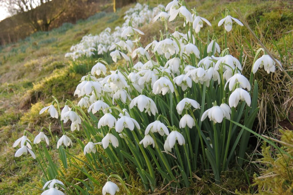 There is everything from swathes of snowdrops to tiny pockets. They grow in profusion under the protection of woodland, take shelter behind stones and fallen branches and peep through moss and grasses.